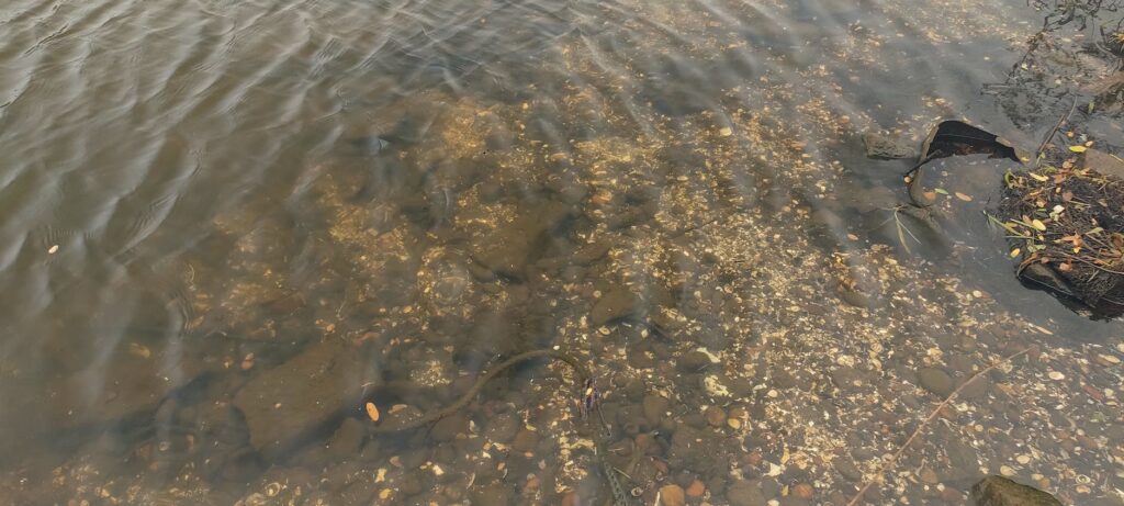 逆に、適度な濁りがある池は冬でも釣れる池。